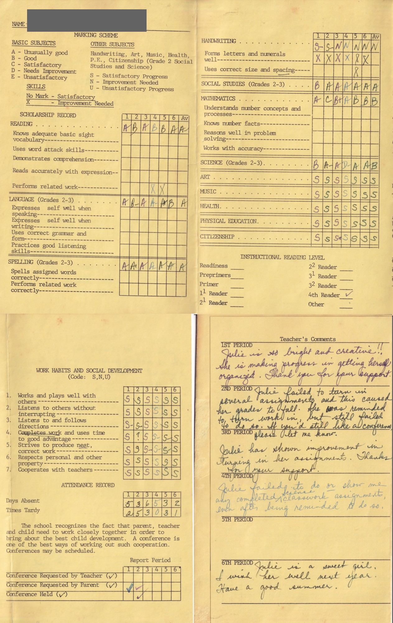 I didn't like Mrs. Fare because she was bad about explaining "why." Her policy on worksheets was that children had to bring their work up and have it corrected before they could go on to their next assignment, and if we got something wrong she'd just put an X there without giving us any coaching. I remember not grasping the concept of apostrophes right away and having a lot of stress over the fact that she would just give me an X instead of explaining how I should figure it out, leaving me to just play a guessing game until I got a check mark. I was the shortest kid in the class as well as the new kid, and again I didn't make any friends. I got lost on the way to the bathroom. I didn't talk loud enough. I still sucked my thumb.