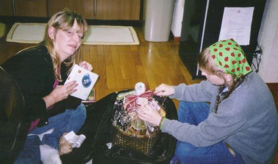 We had a rather exhausting ride back on the train, annoyed and depressed about the suitcase (since it contained gifts that we were supposed to give to Patricia's teacher upon meeting her tomorrow); and now here's the really insane part. When we got back to her house, the luggage was just inside, sitting in the genkan. Despite the fact that all Patricia had on her cell phone was a confused message from the delivery people about her and her neighbor not being home, the luggage was THERE! So we unpacked it and prepared the gift basket for presentation to her teacher and all was well. Weirdly enough, we still don't know how it got in the apartment.